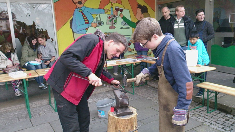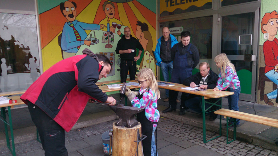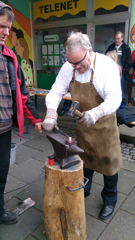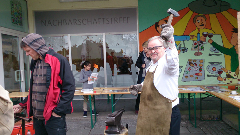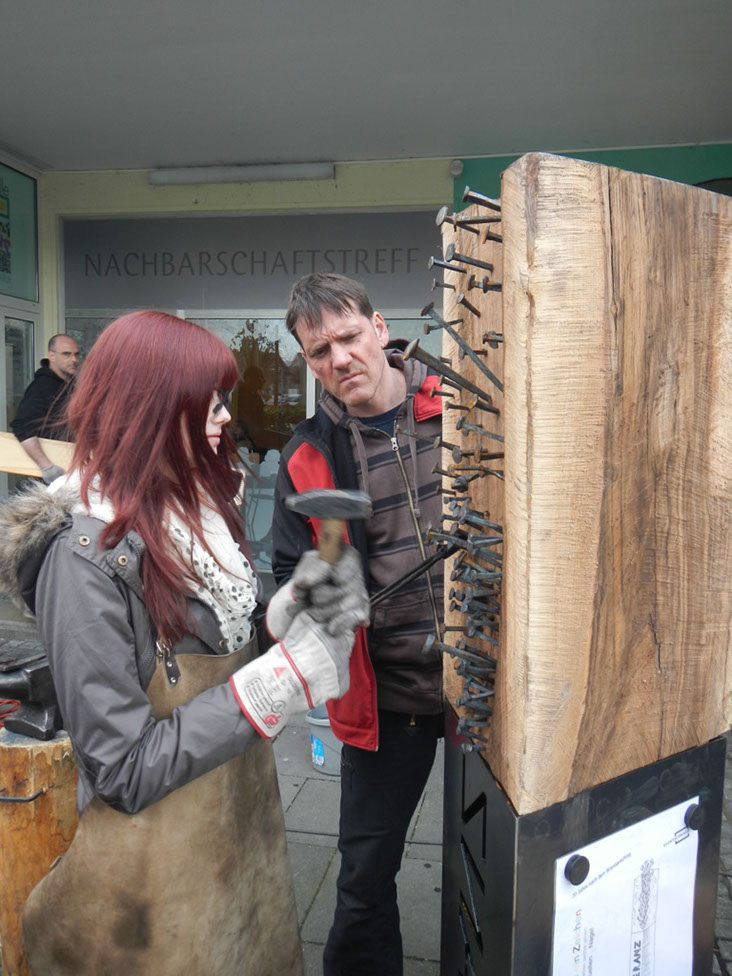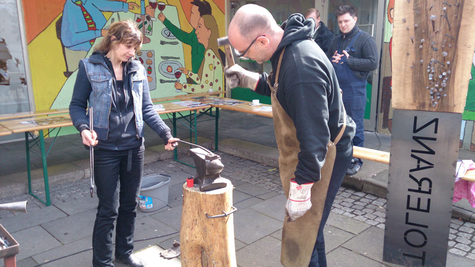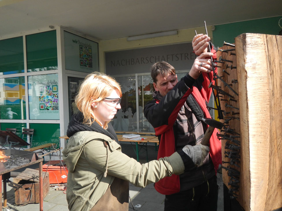 Die Eventschmiede von Michael Bauer-Brandes und der Verein „Wir in der Hasseldelle“ arbeiten gemeinsam an einer Skulptur für Toleranz und Vielfalt. Anlass ist der 20. Jahrestag des Solinger Brandanschlags. Jeder kann sich mit einem selbst geschmiedeten und signierten Nagel daran beteiligen.