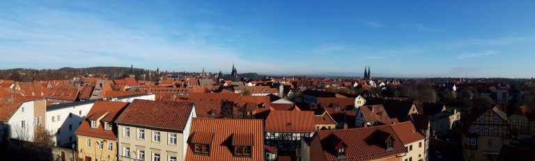 Am nächsten Tag ging es bei strahlendem Sonnenschein nach Quedlinburg. Mit dem über 80 Hektar großen historischen Stadtkern, zählt die Stadt zu den größten Flächendenkmälern in Deutschland. Auf einem Sandsteinfelsen ragt die mehr als tausendjährige romanische Stiftskirche wie ein Wahrzeichen über der Stadt und gehört zu den bedeutendsten Bauten der Romantik. Von hier aus bot sich der Gruppe ein wundervoller Blick über die Stadt.